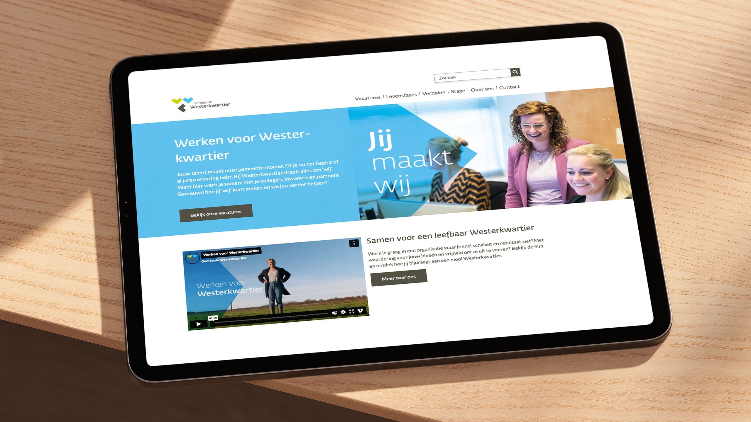 Bekijk project ↗De gemeente Westerkwartier had haar merkidentiteit net opnieuw gevonden rond één letter: de W van wij. De volgende vraag lag voor de hand en was toch ingewikkeld: als wij het merk is, wat betekent dat dan voor werken bij de gemeente? Na gesprekken met tien ambassadeurs en vier levensfase-persona's - starter, spitsuur, mid-carrière, senior - werd duidelijk dat medewerkers niet voor een baan komen maar voor een bijdrage.