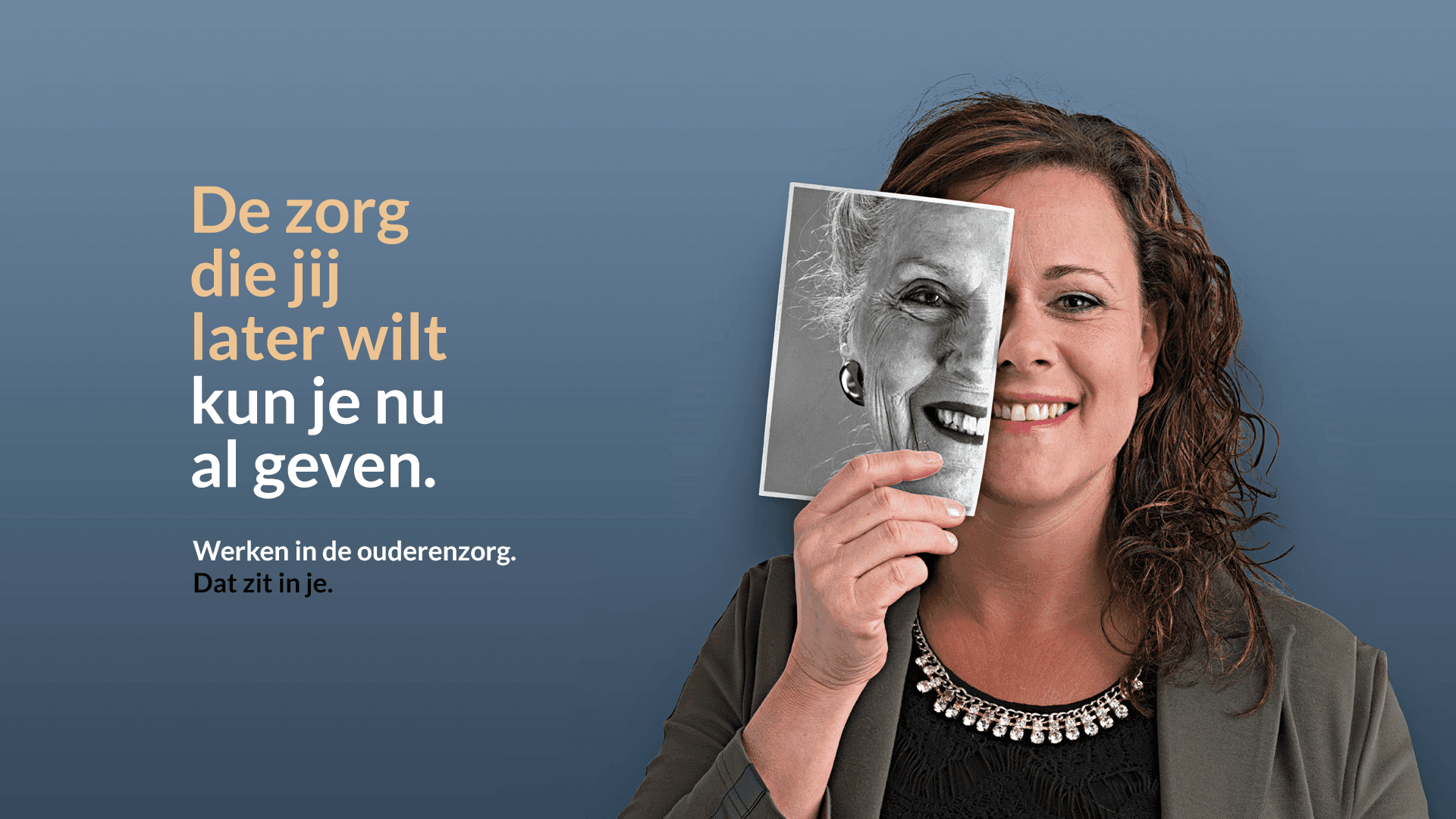 De campagne maakt dat letterlijk zichtbaar door medewerkers te portretteren naast een foto van hun oudere zelf. Geen wervingsbelofte, maar een spiegel — en daarmee een vorm van zelfselectie.