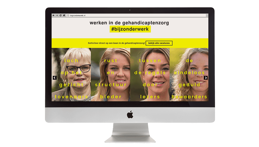 Bekijk project ↗De gehandicaptenzorg kampt met een imagoprobleem dat zich niet laat oplossen met betere beloftes: mensen buiten de sector zien het werk als zwaar en eentonig, terwijl mensen erin het beschrijven als boeiend en afwisselend. Die kloof communicatief overbruggen is lastig, want vertellen dat het leuker is dan je denkt overtuigt niemand. Het inzicht kwam uit de sector zelf: de sleutel ligt niet in de taken maar in de persoonlijkheden.
