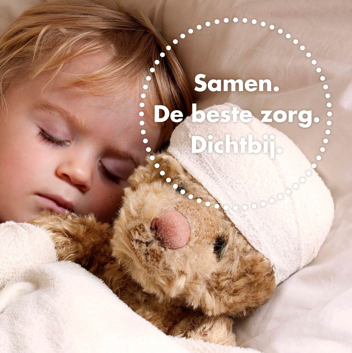 De huisstijl maakt die verbinding zichtbaar: een gestileerd stippenpatroon rondom Scheemda dat het ziekenhuis visueel verankert in het landschap. Niet een ziekenhuis in het Ommeland, maar het ziekenhuis ván het Ommeland. Hetzelfde gebouw, een andere relatie met de regio.